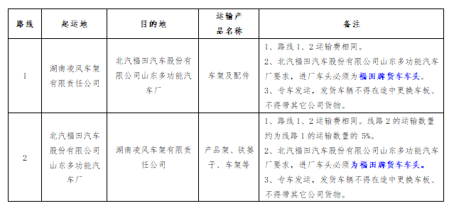 四、具体运输线路及要求见下表: