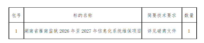湖南省雁南监狱的湖南省雁南监狱2026年至2027年信息化系统维保项目于2026年01月14日结束,现将中标(成交)公告如下: